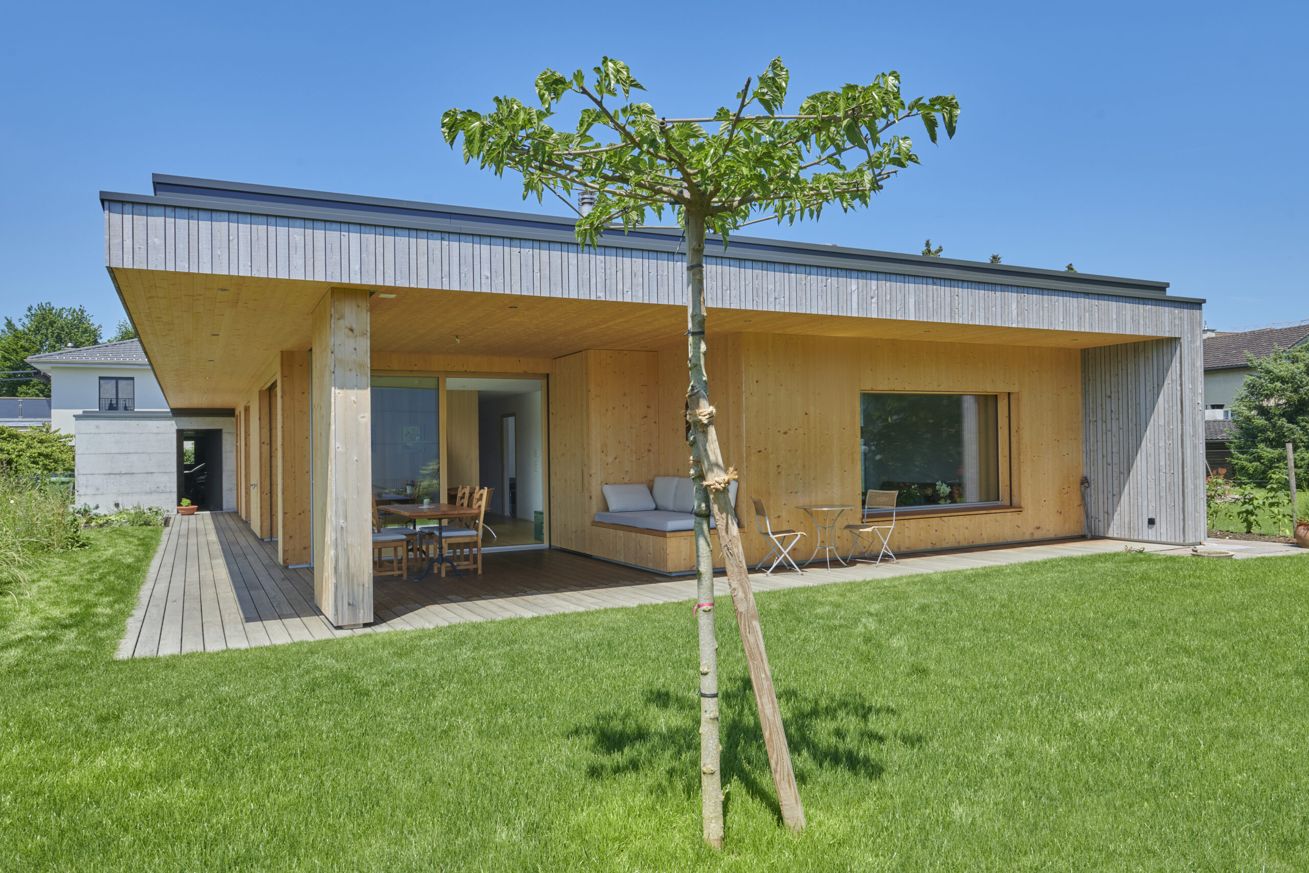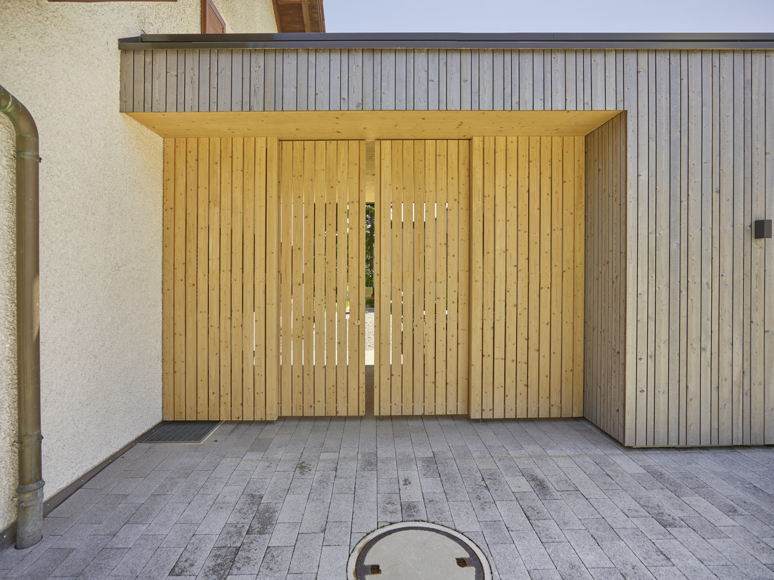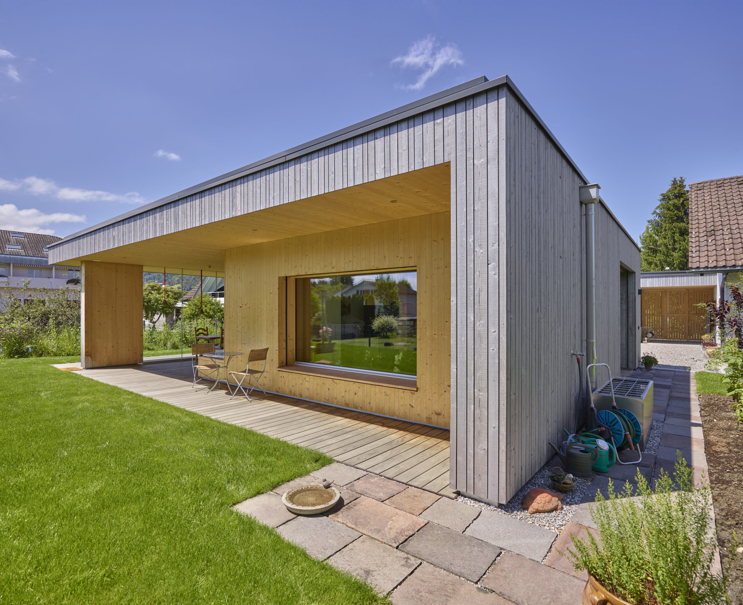 Fassade: Holzfassade vorvergraut